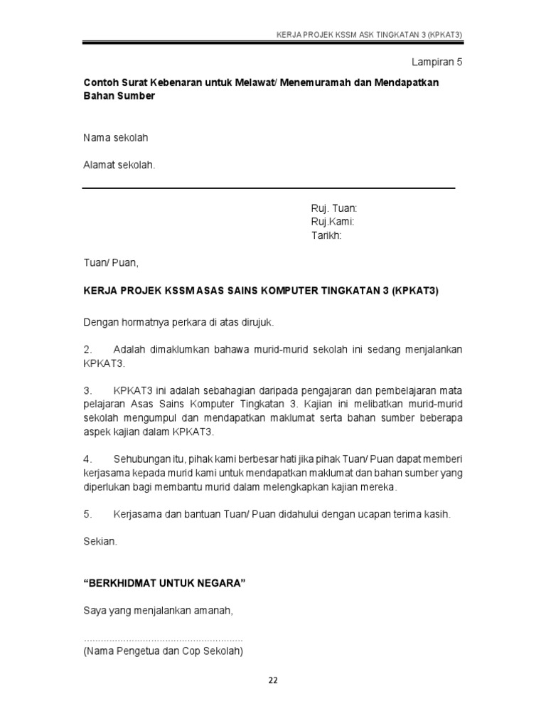 Contoh Surat Kebenaran Untuk Melawat Atau Menemuramah Dan Mendapatkan Bahan Sumber Pdf